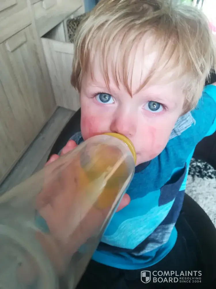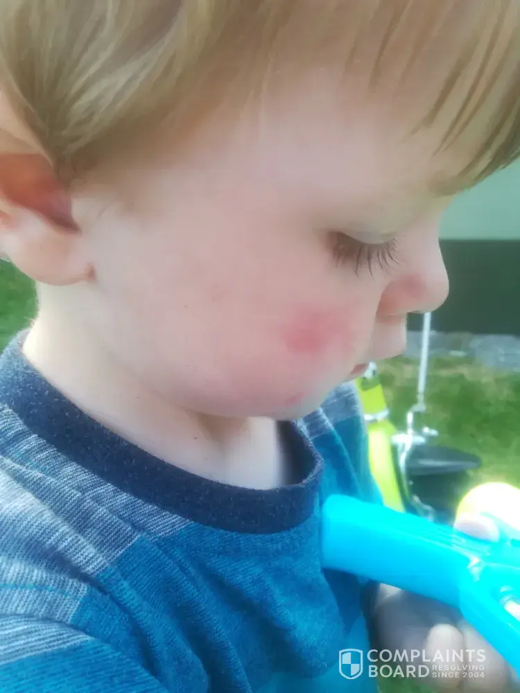My 2 year old has had a very bad reaction to your suncream on his face!