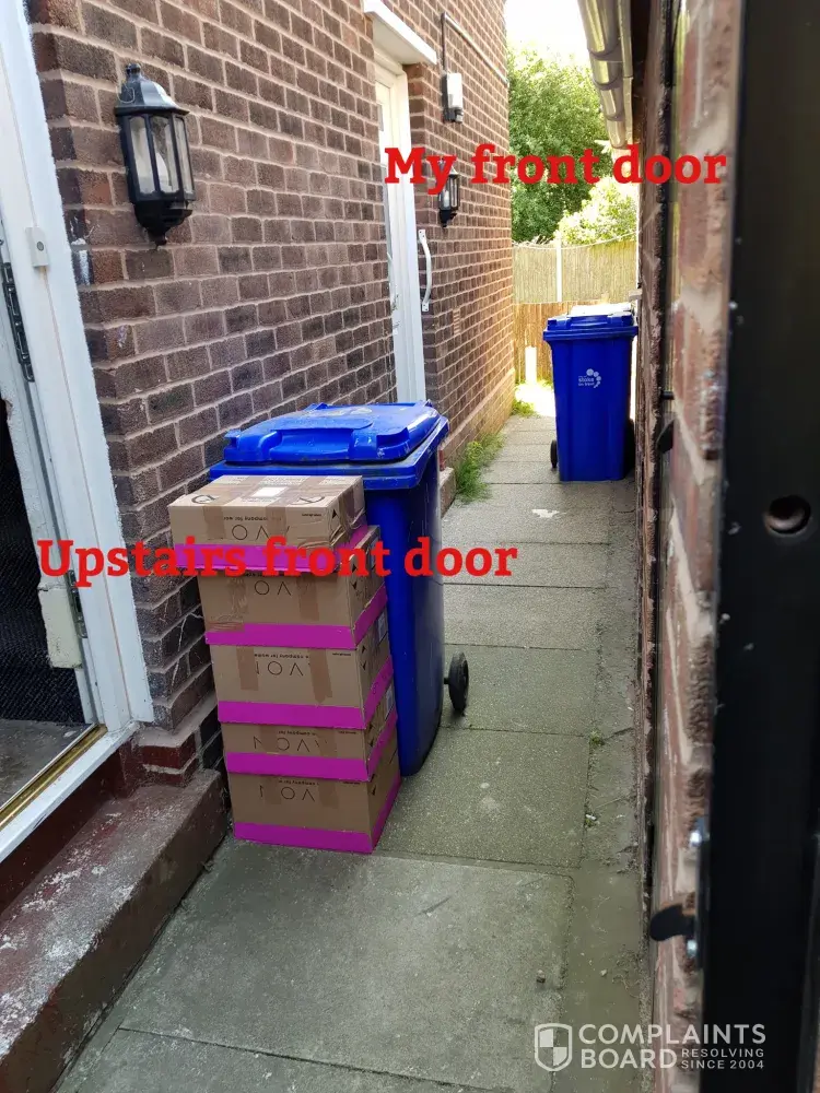 Hello i live at number 47 brookside drive in blurton stoke-Trent one of your delivery drivers was dropping stuff of for the people upstairs there is an ally way which I have to use to get to my front door there isn't much space anyway and the person upstairs doesn't care that I have to struggle to get in and out I came in and the delivery driver was blocking the path I asked if I can get past he said yes in a minute which is fine I came in and the person upstairs came down the stairs ranting that she doesn't complain about my delivery's I have delivery's from Royal Mail or my medication one parcel the problem is that while I was arguing with the woman upstairs your delivery drive joined in so I had the two of them ranting at me because I wanted to get in to the place I live I have a problem getting in because I only have one eye metal rods in my back and epilepsy I just ignore the women upstairs but when your driver starts as well it's really not a nice situation to be in I did say to the driver I'm sorry