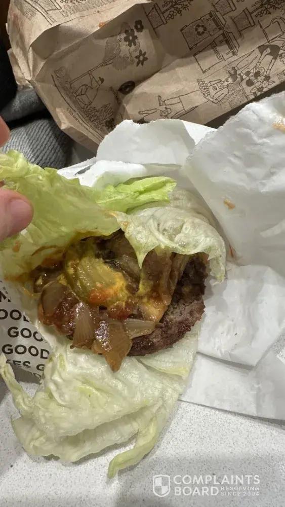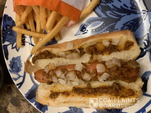 Read full complaintBurgers and fries, onion rings