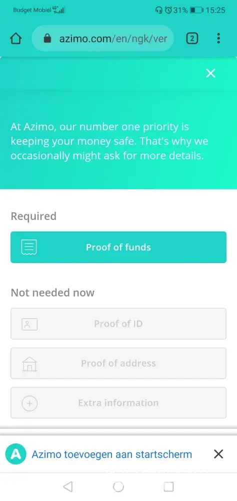 Not worth the risk. Protect yourself and your money by staying away from Azimo.