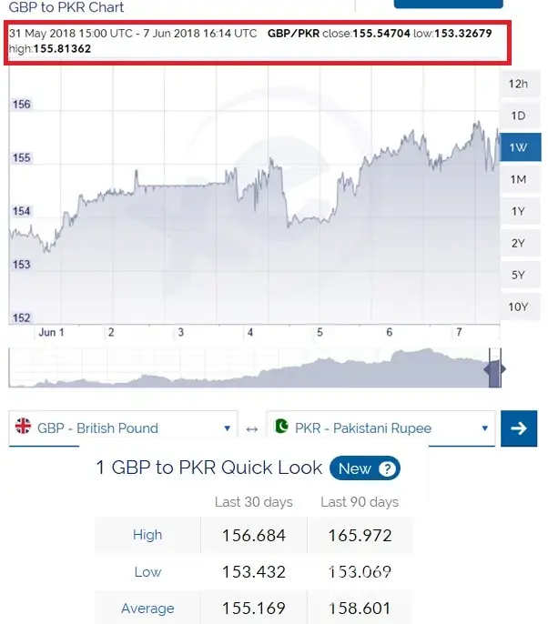 The rate at the time of sending was 1522 PKR to 1 GBP.