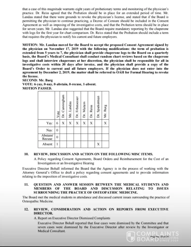 The audio is available for the 11-23-19 medical board meeting. Lady's please listen to it so you know what kind of man this doctor truly is. It starts at the 1hr and 45minute mark. I'm sure you'll find it very interesting What the medical board has to say about this doctor.