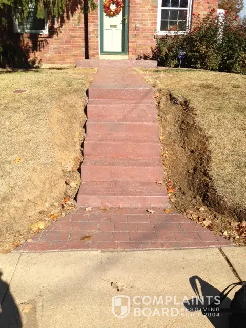11. My whole front lawn is messed up. They left the hill all torn up chopped up is more like. I will have to have it all landscaped and even out now. I am working on bids for that. Some of them are over a 1000.00 to fix it. The steps he put in are lower than the hill... the original ones where not like that.