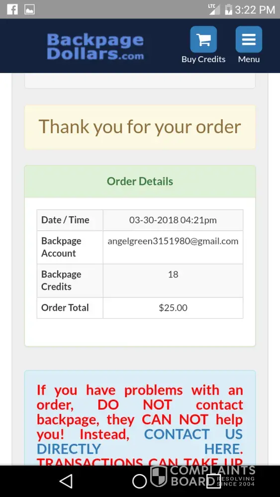 Backpagedollars.com scammed me out $25.00 from a prepaid walmart gift card. And wont return emails or anything to fix this.i emailed backpage.com and got no response as well.
