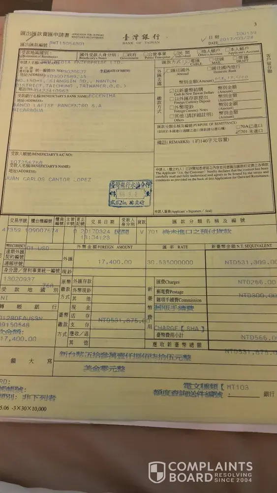 Verified customer This complaint was posted by a verified customer. Learn more