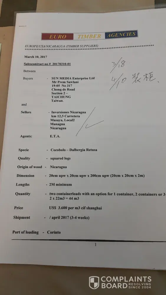 Mr. Jaap van den berg is a dutch man from holland. 3 months ago he contacted me told me he is broker of timber and he has worldwide contacts. He has website which is impressive. He is in his 80s old man do no one will doubt he is a fraudster and cheater. He convinced me has cocobolo logs from nicaragua at good price and we made contract and i transfered...