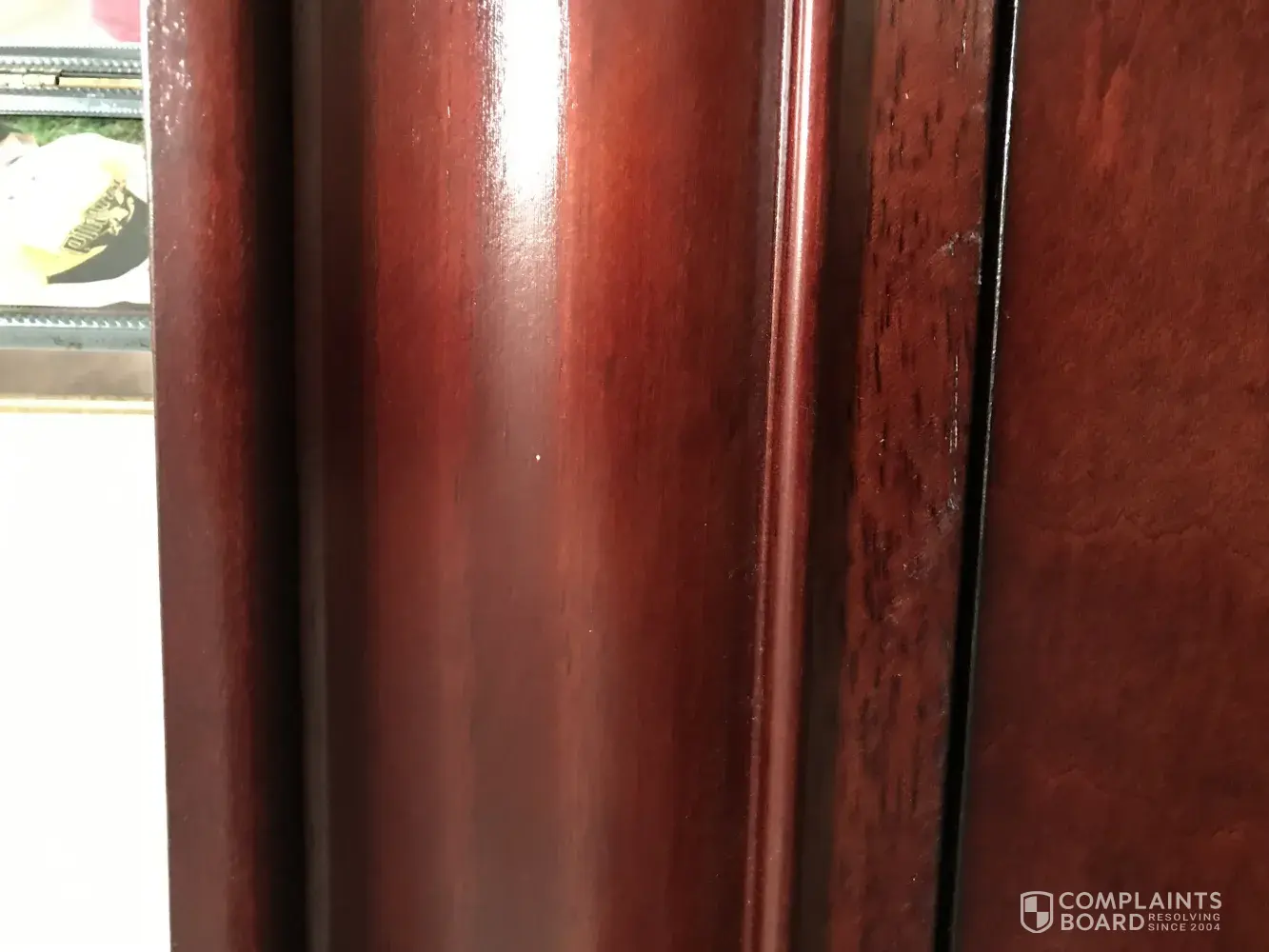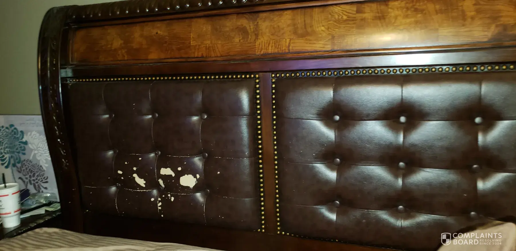 My husband and I have many pieces of furniture that we have purchased from Babcock. We have also purchased a bedroom set that we are pleased with, aside from our headboard which is now peeling terribly. It is bubbling and pieces are falling off. It looks terrible and I have pictures enclosed of the damage. We would like to continue purchasing furniture from your company and would like this situation resolved in the form of your company providing us with a replacement headboard. We would like to thank you for your assistance in advance!