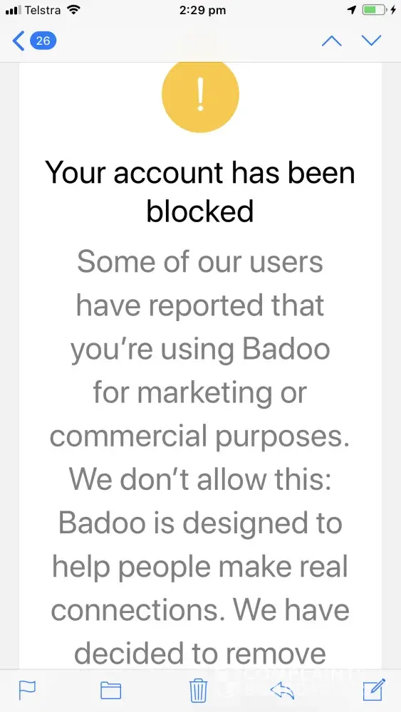 I downloaded badoo and registered only yesterday evening and log on this afternoon only to find I have been blocked without a reason. While logged in a message popped up telling me there was an issue with a server. I pressed okay to which it logged me out. I re entered my number and password and now I get a message reading 'your account has been blocked, check your email for details' I have had nothing come through on my emails and did nothing wrong while using the site. Why has my account been blocked and is it permanent? I don't understand. I was also verified on all platforms bar twitter.