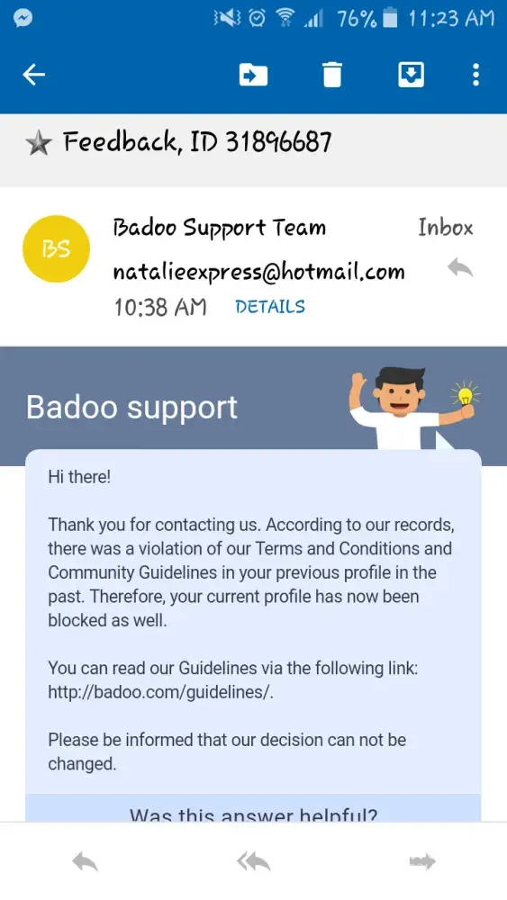 05.11.2016 19:52 A Equipa de Suporte Badoo escreveu: