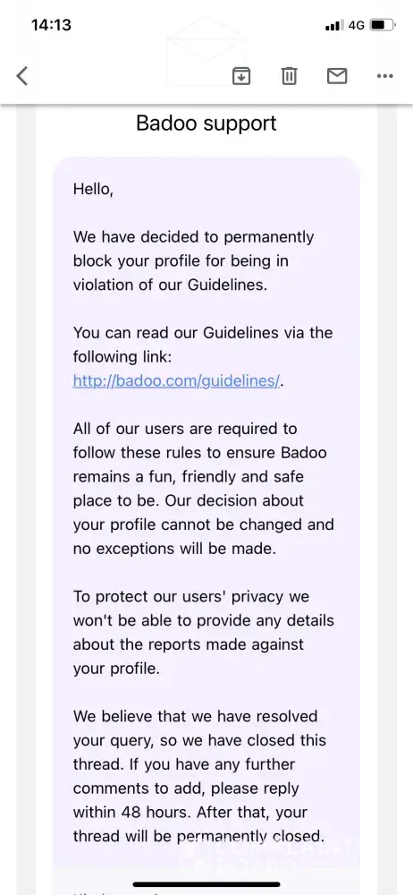 But for badoo to say they investigate everything before blocking is false. Reason I know this is false is because I opened another account and it was blocked within hours so unless badoo is better at investigations than the police this is a clear lie.