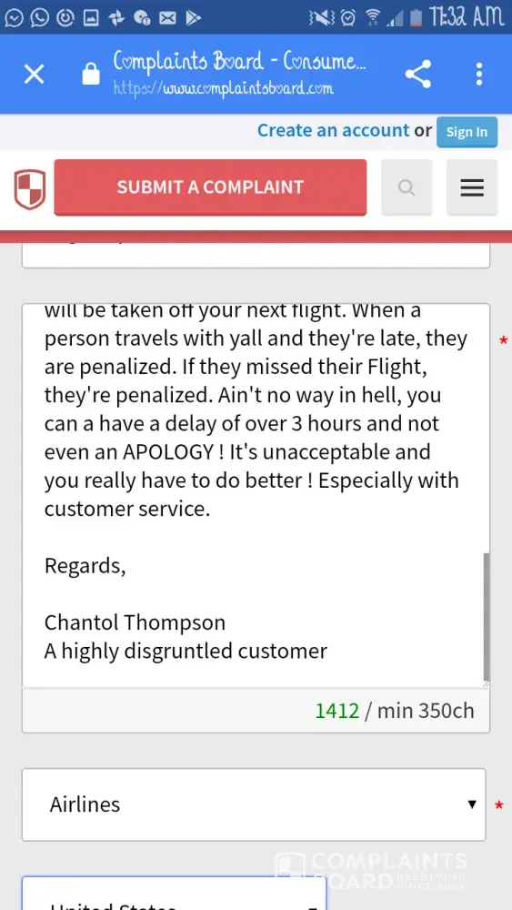 My first complaint didn't go through but I screenshotted it and attached it to this message.