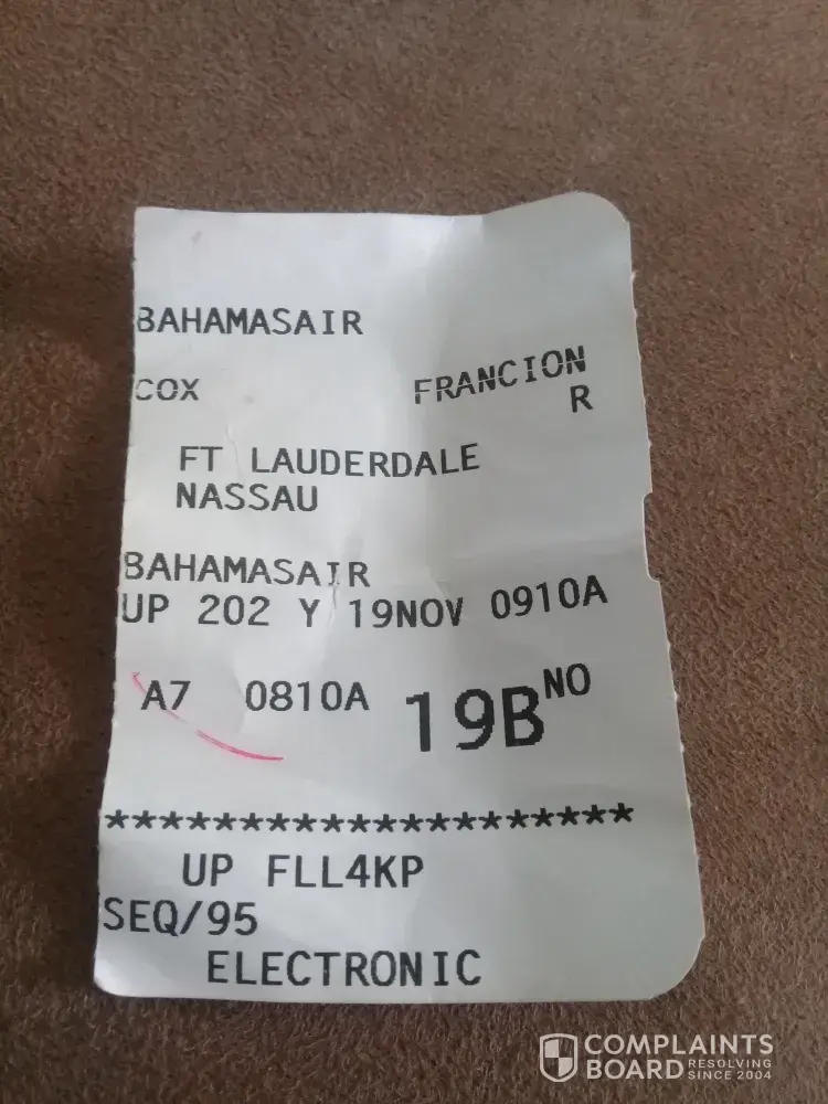 My fiance and I were on Bahamasair flight 202 out of fort flauthdale to Nassau on the 19th of November 2017.