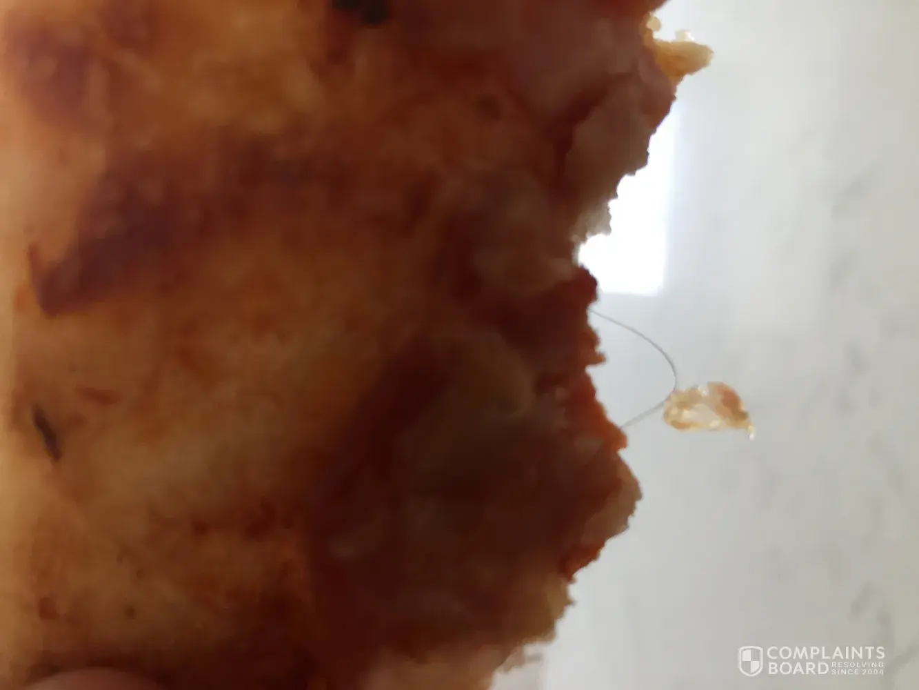 Today I purchased a number of products from bakers delight, as my daughter had just been discharged from Hospital and is not permitted to cook or clean for a specific time, one of the products was a BBQ Bonanza Pizza for my daughter, it had a hair baked into the product, this is both disappointing and off putting, I have attached a photo as evidence and hope to have this matter resolved as soon as possible. Thank you.