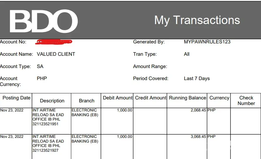 BDO prepaid load