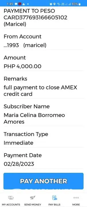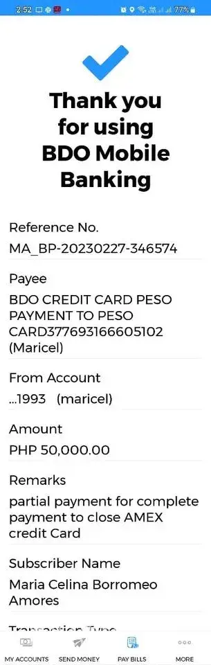 I am writing to raise a serious issue regarding my American Express account with your bank. I was informed that my account had been forwarded to your accredited Collection Agency, and in order to settle the account in full and close it, I needed to pay a total of Php54K. I made two bank transfers on Feb. 27 and Feb. 28, totaling Php54K, as required to close the account.