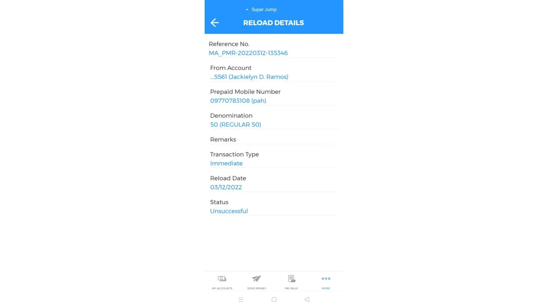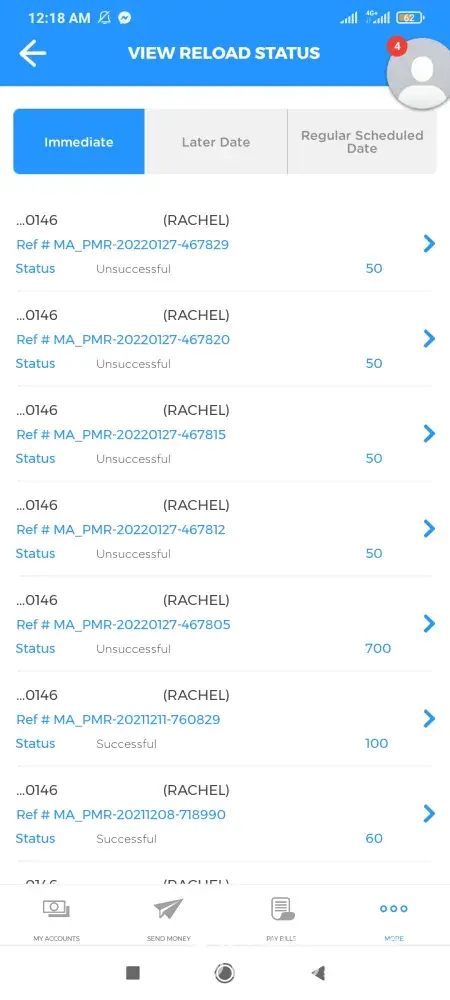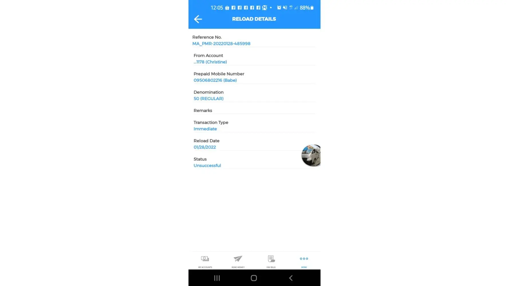 Mobile Reload was unsuccessful but my money was deducted in my mobile banking. My remaining savings was 70.. but now it is only 20 ..it was already deducted ,but the load was unsuccessful