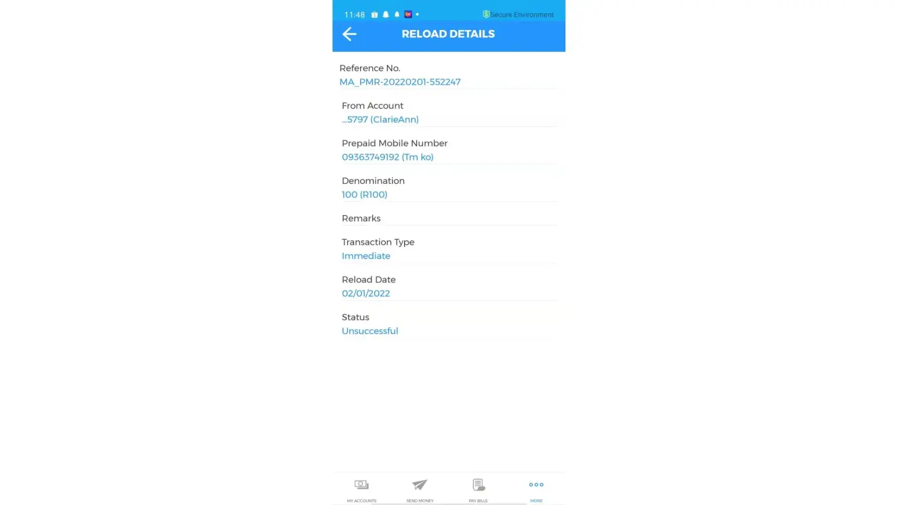 I loaded 100 pesos to my number and another 100 pesos to another number. My concern is that I didn't receive the load to both numbers because the transactions were unsuccessful. They were unsuccessful and yet you deducted 200 pesos in my account!