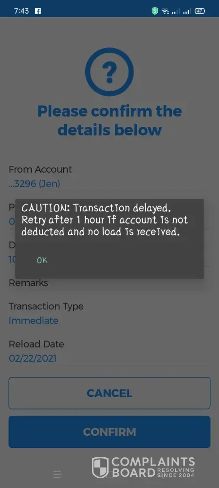 nagload ako kagabi ng 300 load para sa pocket wifi ko ang sabi delayed 1 hour lang daw pero hanggang ngayon wala padin tapos nagload ulit ako ng 30php same number ganun din ang sabi until now wala pa din.330 na nabawas sa savings ko please pabalik ng amount or iload nyo na sayang din yun.ok naman yung data ko bat ganun.nakakabwisit na talaga.last time nagload ako delay nga pero dumating ngayon natuluyan na talaga