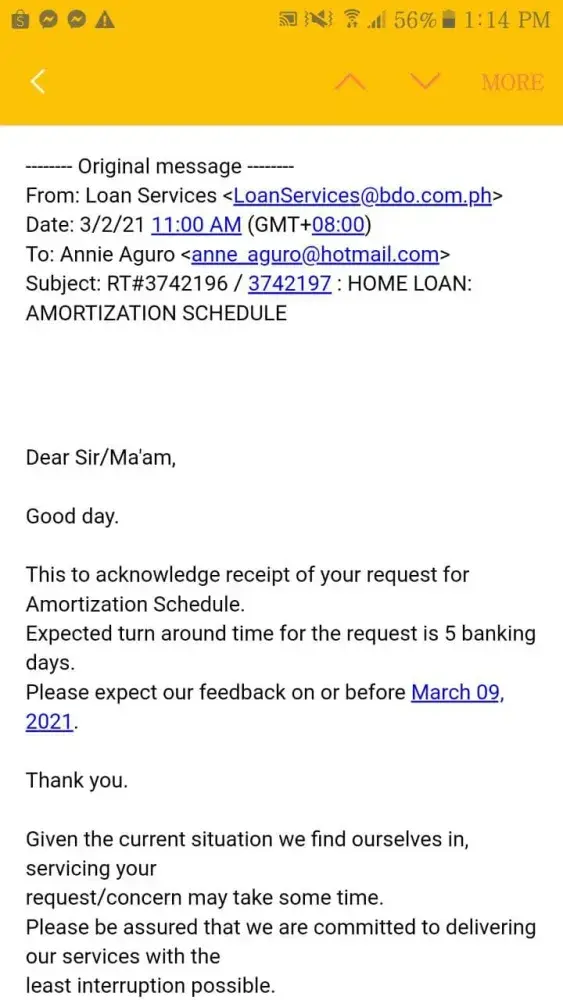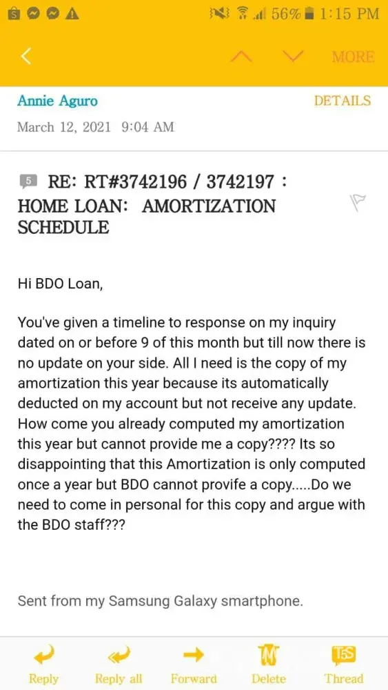 I called last march 2021 to inquire about my home loan account because I lost my job and I don't know when I will be able to find a new job.. so I want to inquire what kind of payment assistance bdo would be able to offer me since I've already paid large amount on my home loan. The specialist I spoke with said that my call will be endorse to the assigned collections officer but two weeks had past and I never received any call, so I decided to call back to make a follow up but something happened.. and now after its been two months and they are still saying the same thing.. very poor service and very disappointing it's seems like they always used this pandemic to make an excuses to provide services to their customers.. I regret that I choose bdo for my home loan.. I will never endorse this bank to my family, relative friend and all the people that I know because I don't want them to suffer the same stressed I've suffered.
