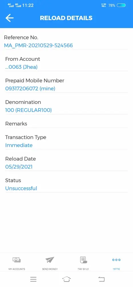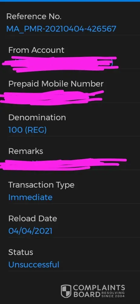 Prepaid reload unsuccessful but deducted from my account