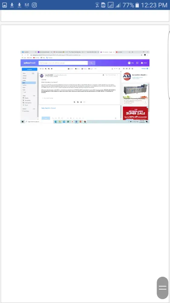 2. On Oct 1, 2020 @ 12:11pm via email, requested Ms Manalili to furnish us official Statement of Account of our auto-loan for us to fully pay. NO REPLY.
