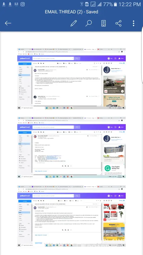 3. On Oct 1, 2020 @ 12:14am via email, requested Ms Kristalyn Garcia to furnish us official Statement of Account for our auto-loan, NO REPLY.