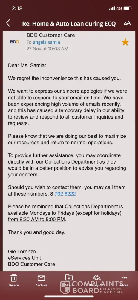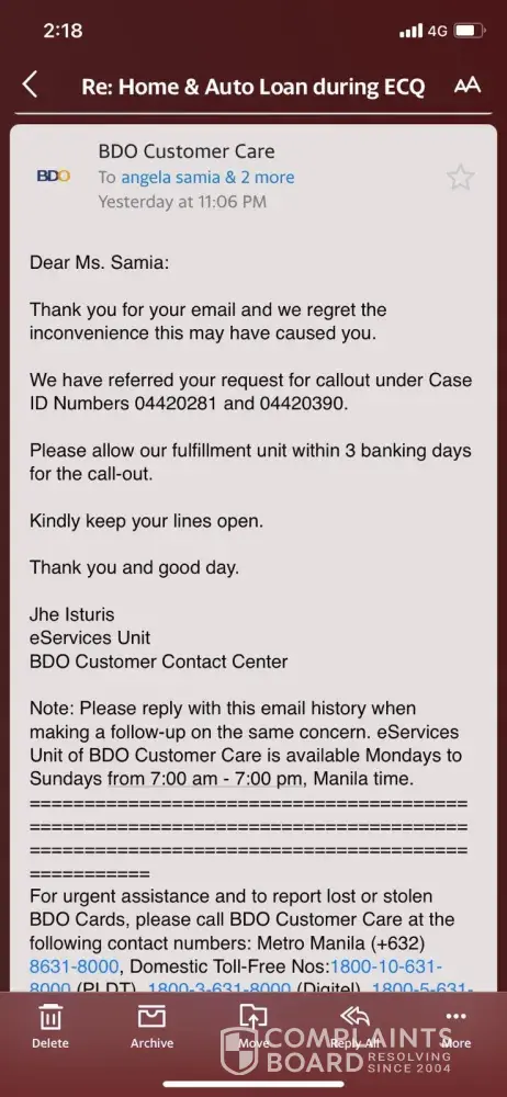 Resolved customer@bdo.com.ph