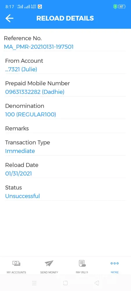 I made a transaction yesterday to load 1000 php on my number using my savings account. But the load did not push. I tried to wait until today but it never came through
