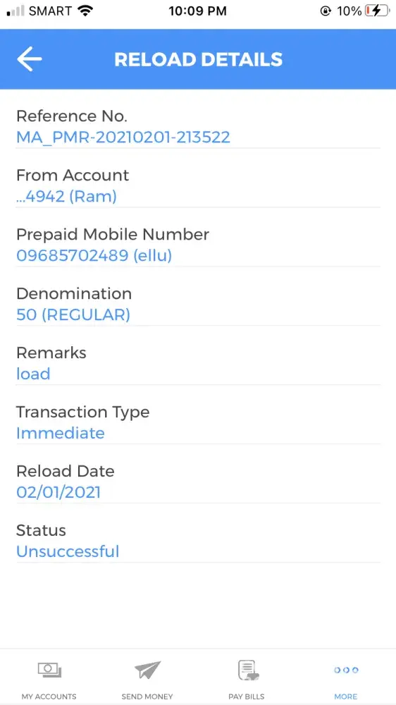 January 22, 2021, at around 6:30ish something in the afternoon I processed to load my number and got an error that it may take for a while and process an hour later. An hour has passed, but no load received eventually my account got deducted, as you can see the status of the transaction was unsuccessful, so no deduction should happen! Please see referenced below: