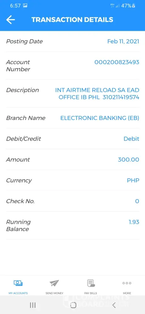 It has been two days I did mobile reload of Php300 using the bdo online banking app account was debited but no load was received. No email confirmation of the transaction.