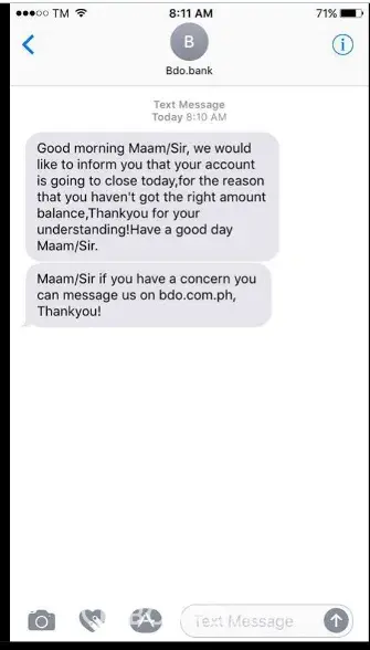 Banco de Oro / BDO Unibank bank threatening customer to close account because of zero balance