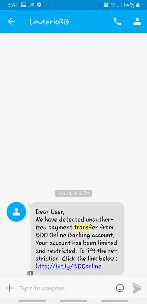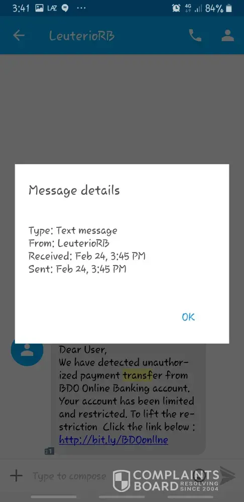 Banco de Oro / BDO Unibank Unauthorized online money transfer