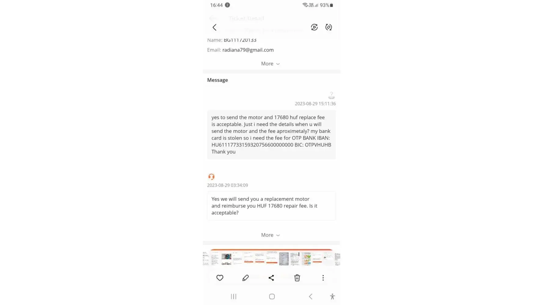 Banggood promised me to pay back partly the service cost 18000 huf and I have a screensot about that.