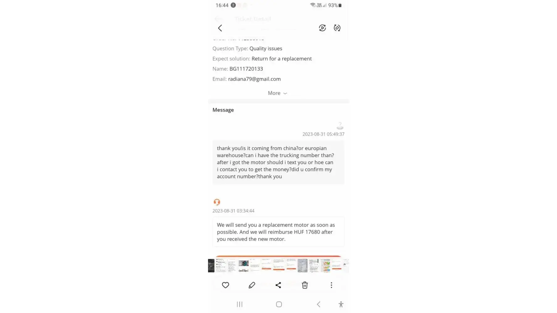 After dispute banggoog sended me a motor without a house and with shorter cable which is reduced the service cost. I payed 36000 huf.