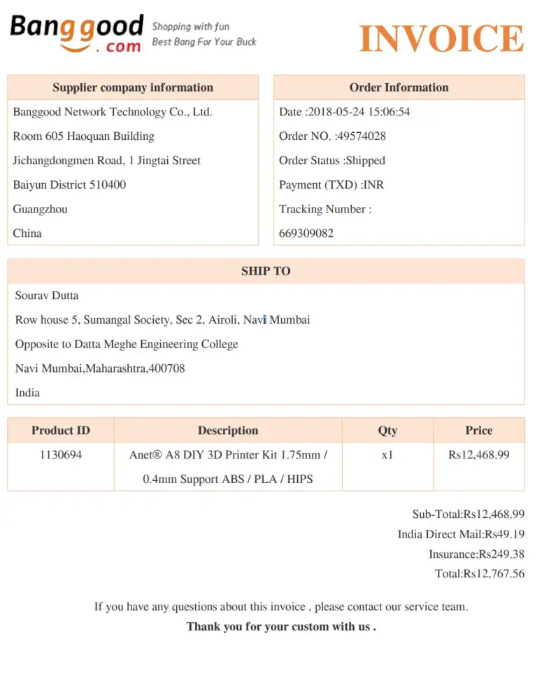 Ravindra s joshi on banggood order trcking no667576943 ref noa0003618041001q