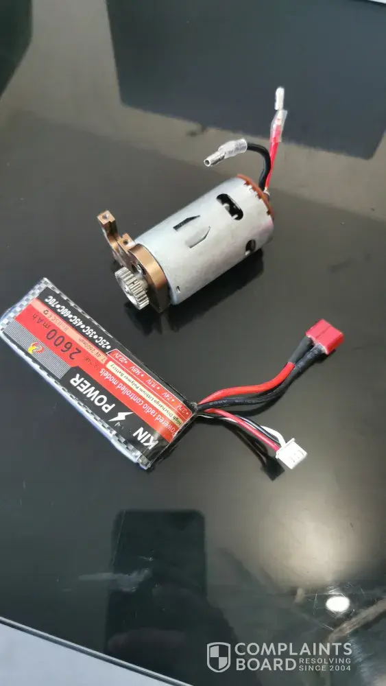 I received the it above iv working order but in just short of 3 weeks with minimal use the motor failed. To this I supplied evidence uploaded to YouTube as asked and the sku code on the box. After speaking the refuse to refund me unless I pay for the return myself. There policy is 180 days return on bad quality. They owe me £68.84? All items in the picture below are faulty. Battery engineount and pinion as they have been over tightened in the factory and broken and the motor is faulty. I have complied but they are not interested