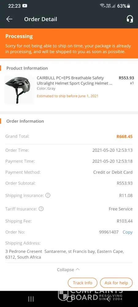 The below is of major concern wrt delivery delays of Banggod Products in SA. It seems the process is following the same bad service delivery as SA Post Office in SA with individuals providing services on behalf of Banggood delivery services threatening customers like me on Whatsapp, which is unacceptable and not answering my e-mails.