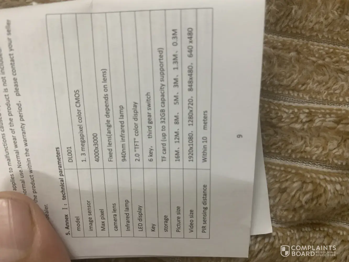 I received an item that is not according to the specification on the site (PIR distances are different than in the site than what I received.