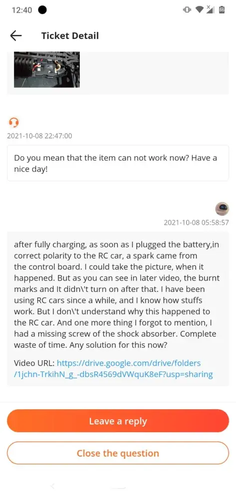 I then opened a new return and replace ticket online and sent everything (video) as requested. Once again, Banggood kept stalling and never provided a return shipping label, or address… Since I bought this bike to take with me in my summer holidays and Banggood provided a faulty bike and bad customer service, I will be forced to request a full refund and return the bike. I already contacted PayPal in order to help me.