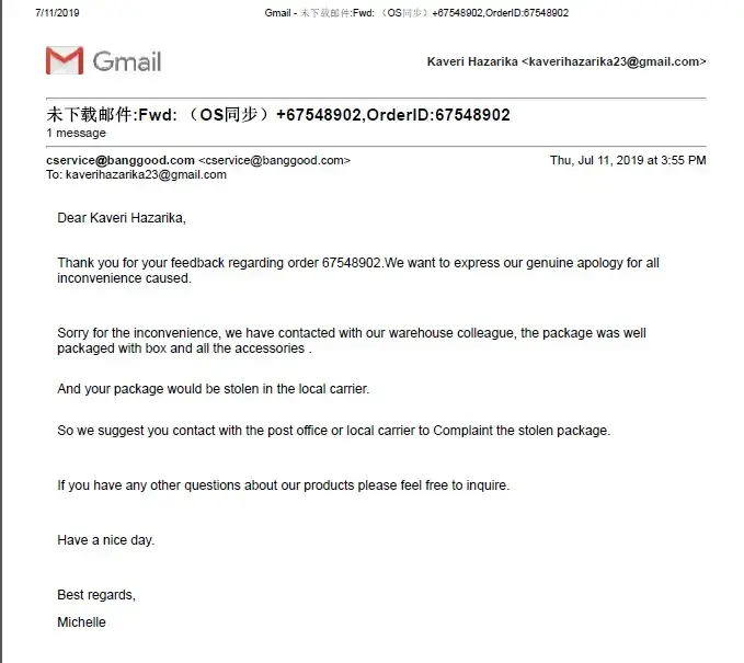 Bangood scam with me . 2 month ago I ordered a product drone . On 24/07/19 package received by courier agent is empty there is nothing in the package . please help me by refund my money back on my Patym -[protected]. Caurier agent is abusing with me and say there is no help providing by us . Now, you can go. Please refund my money back for better surve in future delivery