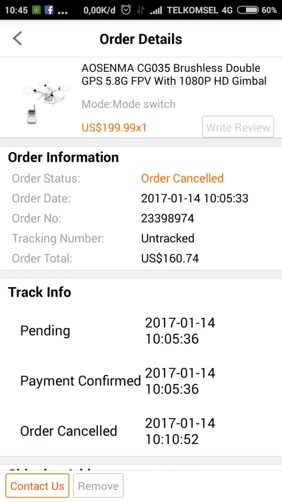 Banggood cancelled my order without notification that it had been cancelled. I had to go into my order status to find out it was cancelled. I really wanted what I had ordered. I chatted with C/S and he told me my order had been cancelled due to system error. He stated I would get a refund and to just place the order once again. I was my first order and I was hesitant to order from Banggood. I will NOT be purchasing from them again as this was their first impression they left me with.