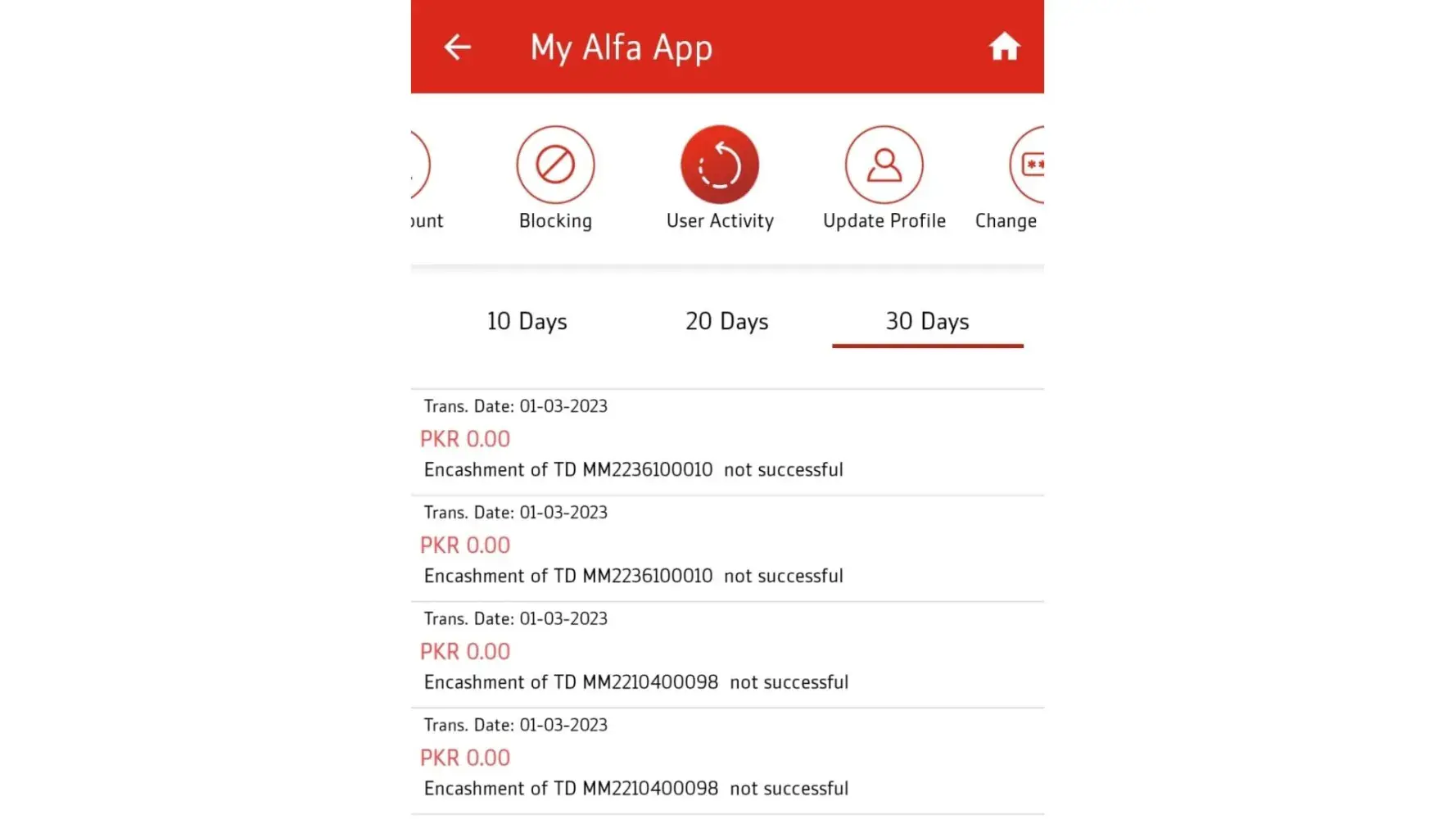 I receive only one transaction in my account in the third week of the month. Otherwise, I am not using the account as Alfalah bank is not helping the clients. Rather day by day, problems are increasing.