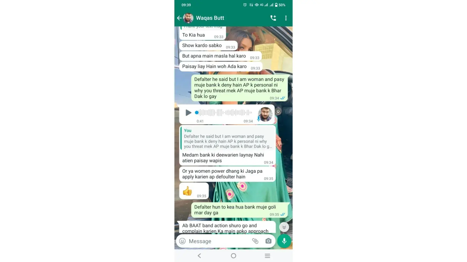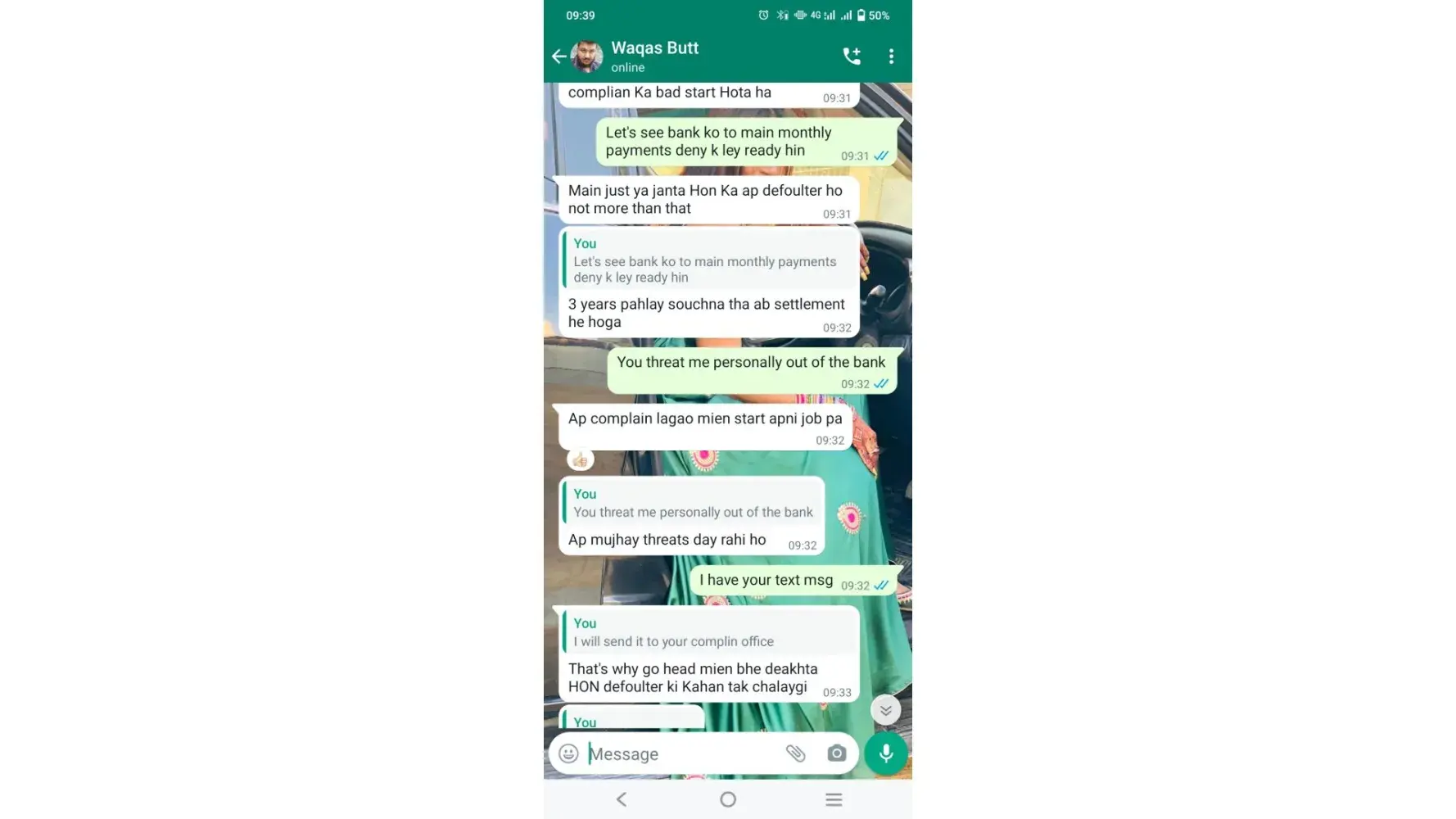 My name is Sumreen kanwal I am your costmor personal loan I never pay my instalments from one year because of financial crisis your employee Waqas butt aproch me I told him I will pay monthly because I am single mother I am not able to pay in one go but he treated me personally I have his message he threatening me about my religion and his ngo in Afghanistan if I will not pay in one go and he not achieve his target he will kidnp me and do all I am not able to tolerate all these kind of things I am agreed to pay you monthly but why he is so perneol with me and send me threatening message