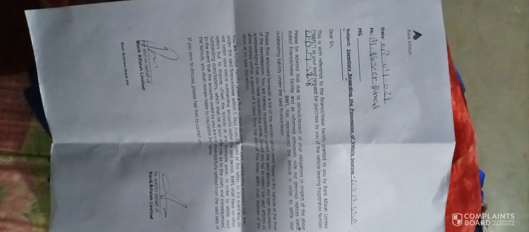 We are a customer of Alfalah Bank as we've buy a X-PV car on lease from bank. We're paying our installment with due but with the passage of time we faced Corona and we were not able to pay our installment on time as my father is driver and he used to drive on rent. So Corona has stopped our income source and we were unable to meet our daily routine foods. In that case we are facing alarming situation and we're late to pay our installment. But 2 days ago my father has gone to Multan but bank Alfalah team has capture our vehicle so I think this totally against the rules. We were looking for corona relief but company has introduce dishonesty and we're weeping on our home. I'm totally unsatisfied with the services of this company. May Allah destroy this company and the employees who are using their resources against poor person. This is totally fraud because manager is saying that company will sell your vehicle and will never pay you your amount so we're complaining on citizen portal. We need our rights. Please understand poor people's life troubles.