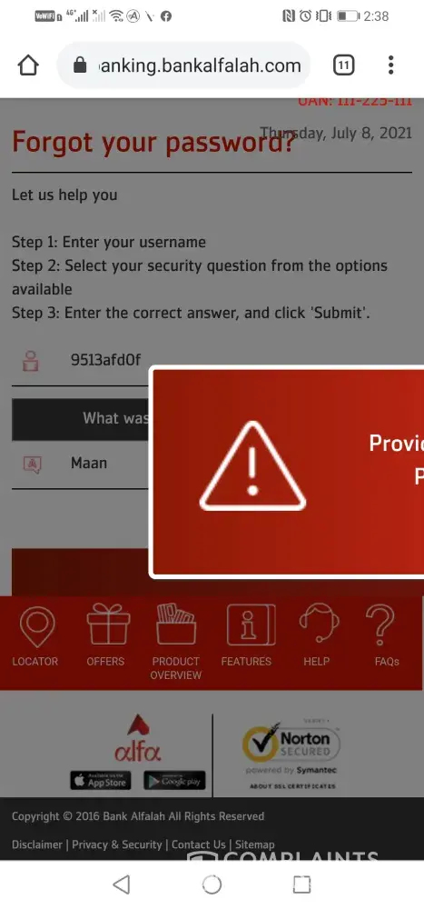 I am complaining about bank Alfalah ,GT road Sahiwal