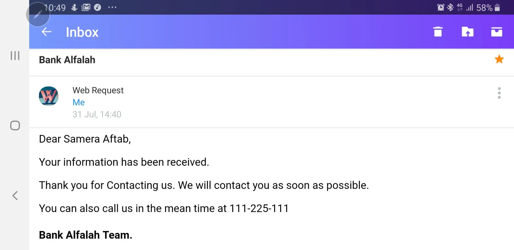 I am extremely disappointed in the service provided by bank Alfalah. If I don't get a response soon, I will have no option write to State bank.