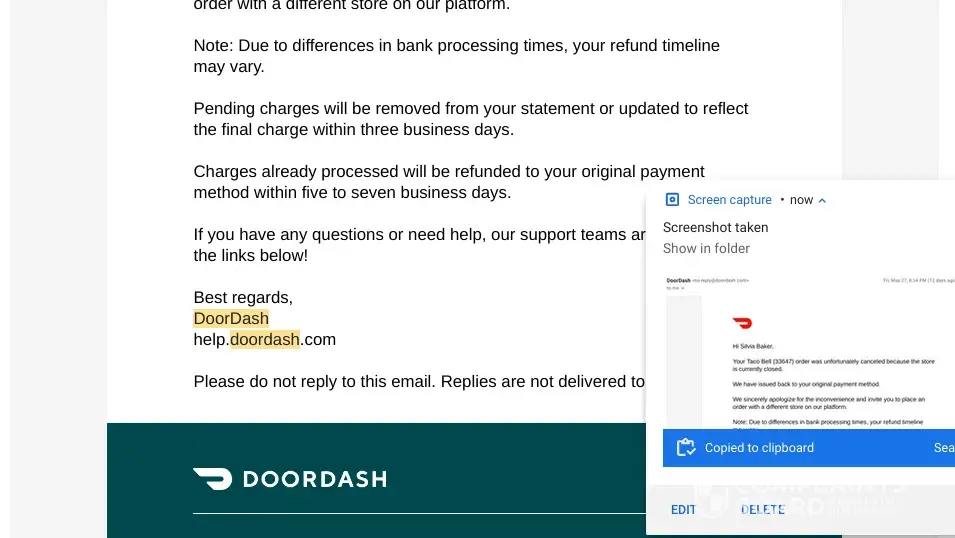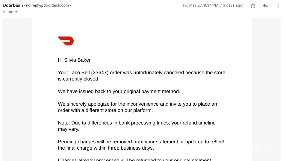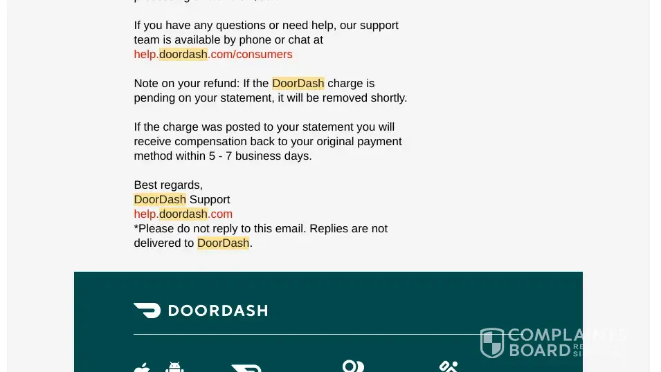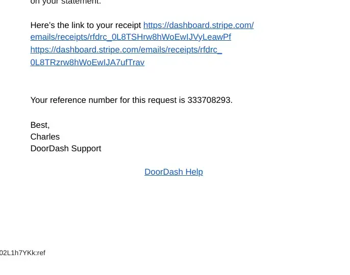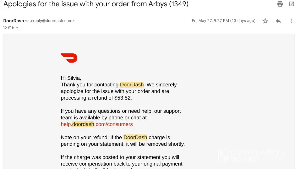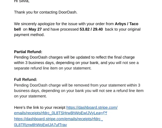 I made 2 purchases through doordash on May 27, 2022. One was for $29.40 and the other was for $53.82. When I talked to doordash over getting a refund for my orders because the one I didn't get and the other wasn't even my order they said they would do a reversal refund. Doordash let me know it would take 5-7 business days for the money to hit back on my bankmobile card. The time had passed and the money still was not on my card. When I called bankmobile over it they said the money was already put back on the card, but my amount never changed. I tried to talk to a manager about it. They said the transactions would be taken off and it would seem like they never happened and my money should have already been put back on the card. It never was though. Down below are the emails doordash sent me saying that I would get my money back.