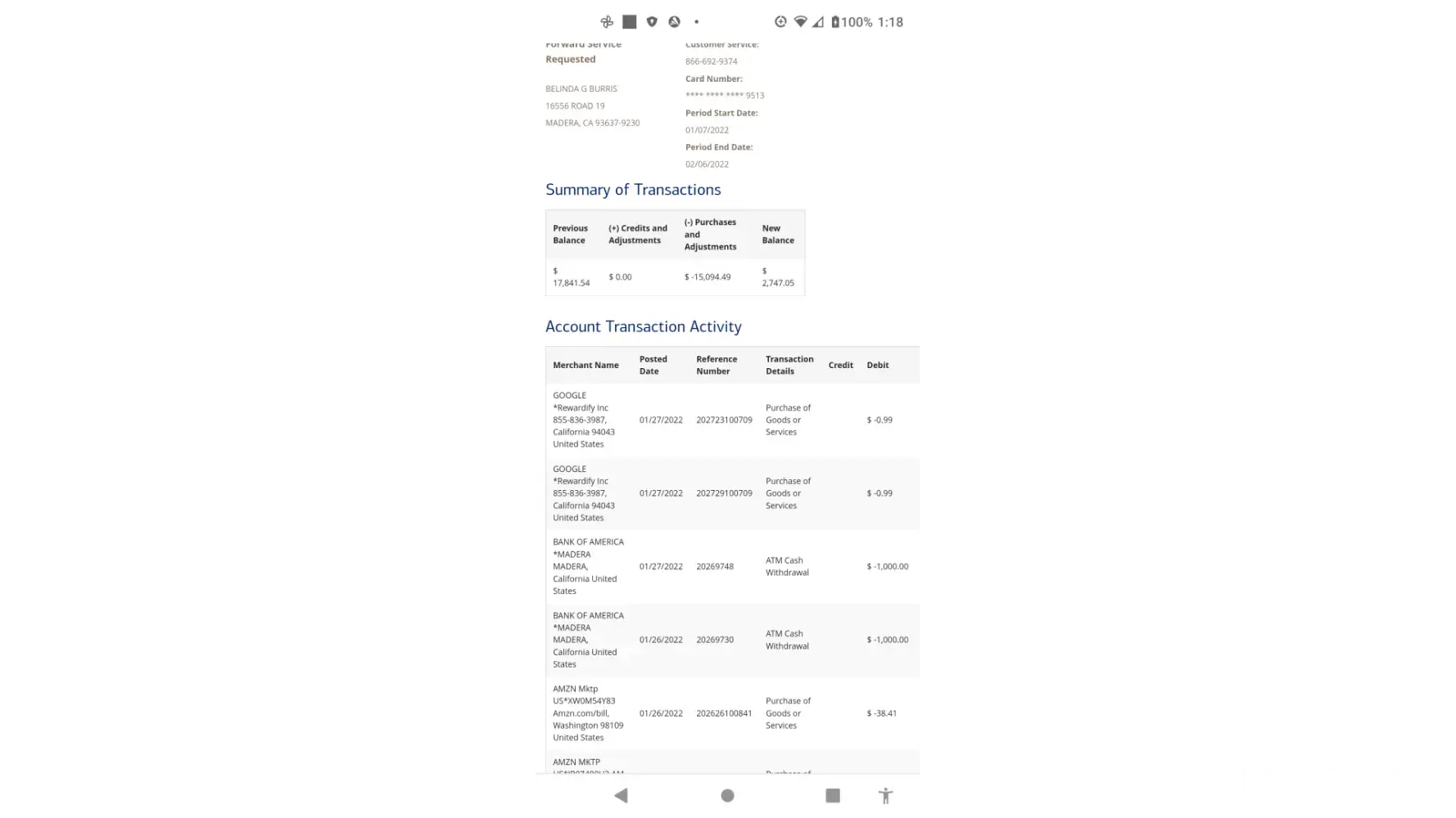 I can understand why the bank thought that I got money from the ATM, but after my card was blocked a couple of times already I was not happy on the 26th of January 2022 when I went to the ATM located at 1225 E. Robertson Blvd. In Chowchilla CA. 93610 to make a withdrawal but couldn't because my card was declined. So I thought I would wait and try again the next day before I called again about it having a block. So the next day January 27th I'm working in Chowchilla again so after I was done for the day I decided to go by the ATM again in Chowchilla CA., but again my card says declined. So after a long day I thought I'd try to get it unblocked through the Bank of America phone app and see that it says that I made a withdrawal from the ATM from the Bank of America located at 501 E. Yosemite Ave Madera CA 93638 on the 26th and the 27th that day. So I got off of the app because it doesn't work like they say it should. But I called to dispute the charges for those two days. But the Bank of America sent a letter a couple of days later saying it was resolved. But I called to dispute that again because I didn't get the money out for those two days because my card was declined. On the third call for my dispute concerning this matter. I brought up the fact that I got a reciept for each time I went to make a withdrawal. And I also made the comment about the ATM Balance Inquiry made on the 26th from a Wells Fargo Bank located at 1006 Blossom Hill Road San Jose CA 95123 prior to the withdrawal from the ATM at the Bank of America Branch in Madera. I also said that they should pull the bank footage. But I haven't heard anything since March concerning this matter. I've checked the bank statement and noticed that there are changes made to it! This is so upsetting to me! My claim number is [protected] from the account ending in 3948 in the amount of $2,000.00 please help me get the Resolution I deserve and that's to get my money put back on my card. That caused me to loose a job out of state! Thank you for your help and I appreciate your support with this matter! Again Thank You, Belinda Burris 16556 Road 19 Madera CA. 93637
