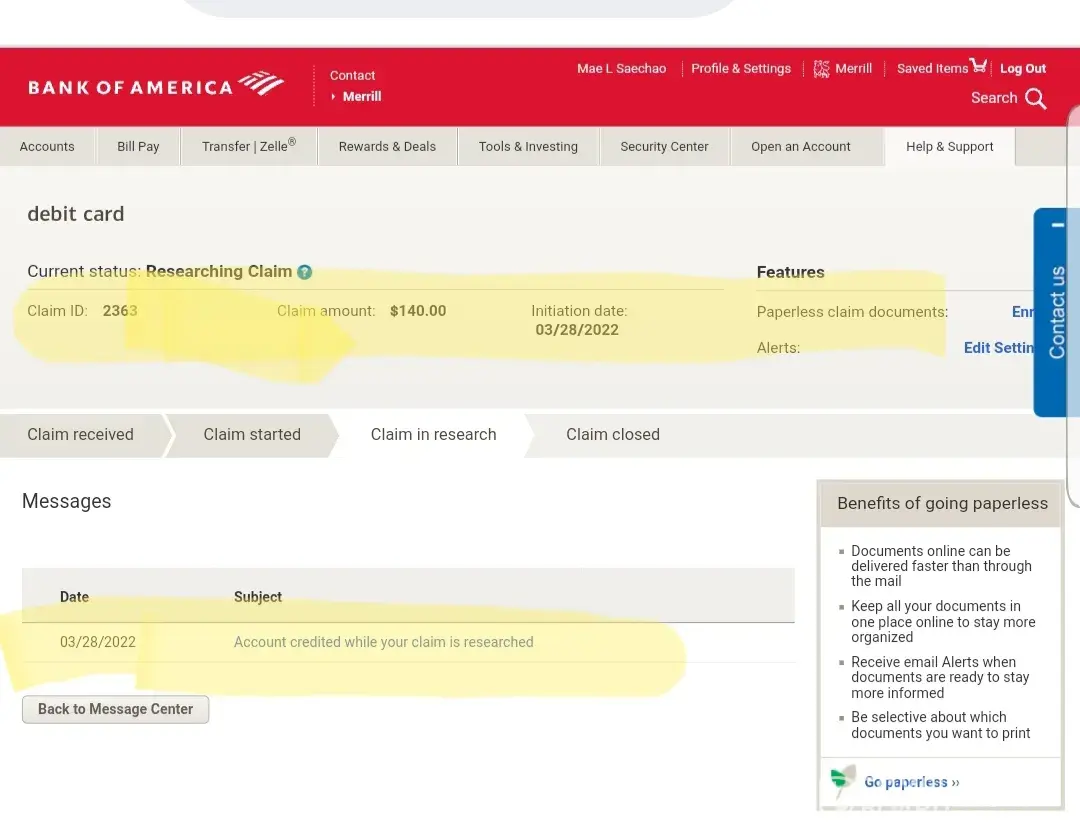 After denying my claim for unauthorized activity, I requested to have it reopened and sent in documents. After routinely calling in I was just informed today that my claims were approved with one pending back in February! However, I never was given a credit or refunded! A complaint was filed and management was notified and I was advised to wait up to 30 days for me to get my money. Mind you, it’s been well over 45 days. If it wasn’t for me having the claim numbers written down, the rep wouldn’t have ever seen the approved claims, but only the pending claim.