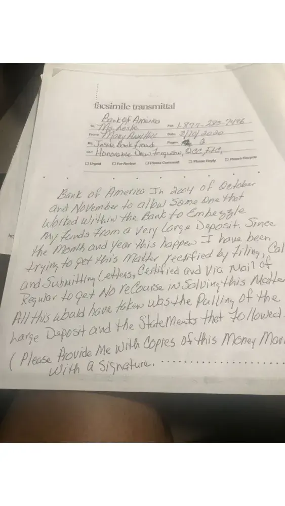 In September 2004, I deposited over $230.000.00 dollars in my checking account # [protected]. This was the only account I had open. when I received my first statement, my account had changed from checking to money market. by no authorization from me. your branch manager on Centennial Avenue was the one who was supposed to resolve the matter. after giving her my driver license and my bank card, she took my card and called it in as lost/stolen. then cut my card up right in front of my face. when I went back that Monday after spending all that time with her that Friday hoping she had resolved the problem. she had quit and no one would generate anther statement because she took my statements with her after telling me she had to keep all my paperwork to get it resolved early Monday morning. she stated she could not make her the copies because the copier was broken. No one in these banks would help me. they continue telling me that someone would call me. then you set up a dummy investigation on transactions in which I have never filed a dispute on. That amount of deposit should have gone to IRS and yet they did not have any forms from the bank neither. I want Bank of America to pull this large deposit and the statements for 2004 thru 2005 as to get to the issue and solve it for once and for all. These items can be pulled from their archive's files in no time. what is BANK OF AMERICA is hiding. The truth should be a priority should have been done in 2004 in generating the statements and retrieving the front and back of the cancel check. no one would generate The Statements nor The Deposit Transaction throughout this entire ordeal. This is what makes this bank look so guilty in their silence. CEO, CFO'S has been contacted from the beginning of this travesty in the year 2004. The higher up have come and gone, yet I still reached out for help. NO RESPONSE. I have done everything humanly possible to get this resolved because this money I was paid. I am living a 24/7 lifetime of pain and suffering. why should the person who has not paid their health and happiness in my day-to-day pain and suffering get the chance to enjoy money that was taken from a Bank who supposed to make sure there is no criminal working with money. Bank of America has jerked me around now for 19 years and it still feel like this bull crap keep happening every day. That's how my pain and suffering is also. I wish all of you could walk in my shoes just for a day. I would not wish this on my worst enemy, although I have none because I treat people in the way I want to be treated. resolve the issue, I do not want to leave this world with the tragedy of what this bank allowed to go unsolved. I am right in wanting a wrong corrected. BANK OF AMERICA, PRACTICE WHAT YOU PREACH. PRAYING AND HOPING FOR AND PRAYING FOR AN ANSWER FOR A PROBLEM THAT HAS WENT ON TOO LONG BY ANYONE STANDARDS. SINCERELY, MARY ANN HOUSER (HILL). GOD IS WATCHING YOU. OUR HEAVENLY FATHER SITS HIGH AND LOOKS DOWN LOW. AMEN.